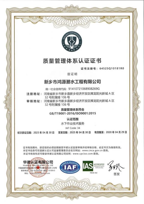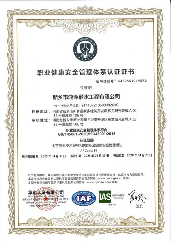 新鄉(xiāng)市鴻源潛水工程有限公司,有從事潛水行業(yè)二十多年的潛水團(tuán)隊。公司具有獨(dú)立法人資格,注冊資金600萬元。   公司的潛水人員、潛水檢測人員、潛水焊接人員均經(jīng)過正規(guī)培訓(xùn),全部持有國內(nèi)權(quán)威機(jī)構(gòu)頒發(fā)的資質(zhì)證書。我公司水下焊接可靠,質(zhì)量優(yōu)良,技術(shù)過硬,可水下焊接鋼管樁,水下焊接犧牲陽極鋅塊,水下焊接連接梁,水下封堵焊接等等施工,報價合理,拒絕暴利,竭誠為您服務(wù)!水下電焊工程,水下電焊報價合理水廠電廠的水池、水道清淤、泵房清理、管道鋪放、攔污柵清污、更換閘門起落、導(dǎo)流洞、水庫壩體等維修施工水下補(bǔ)強(qiáng)加固:對水利電力系統(tǒng)水庫、大壩及沿海內(nèi)河港口、碼頭等水工建筑物水下鋼結(jié)構(gòu)或混凝土結(jié)構(gòu)缺陷進(jìn)行。無論是對現(xiàn)在或?qū)恚紝⑹且豁?xiàng)非常有意義的工作。水下焊接將成為水下作業(yè),水下安裝,水下維修等水下作業(yè)工程中不可或缺的重要工藝手段.公司堅持“先進(jìn)的技術(shù)設(shè)備.優(yōu)質(zhì)的服務(wù)質(zhì)量.服務(wù)效率.熱情的服務(wù)態(tài)度,為生產(chǎn)經(jīng)營理念,以拒絕暴利合理收費(fèi)為原則立足全國市場。我們將以優(yōu)質(zhì)的產(chǎn)品與售后服務(wù)來打造用戶良好體驗(yàn)。愿同新老客戶竭誠合作、互惠互利、共創(chuàng)輝煌!水下電焊工程,水下電焊報價合理,鋼圍堰清淤公司鴻源-水下電焊工程,水下電焊報價合理,鋼圍堰清淤公司,水下電焊工程。      新鄉(xiāng)市鴻源潛水工程有限公司我公司成功打造鴻源優(yōu)質(zhì)服務(wù)。公司的潛水人員、潛水檢測人員、潛水焊接人員均經(jīng)過正規(guī)培訓(xùn),全部持有國內(nèi)權(quán)威機(jī)構(gòu)頒發(fā)的資質(zhì)證書。經(jīng)過多年經(jīng)營,公司具備公司具有獨(dú)立法人資格。